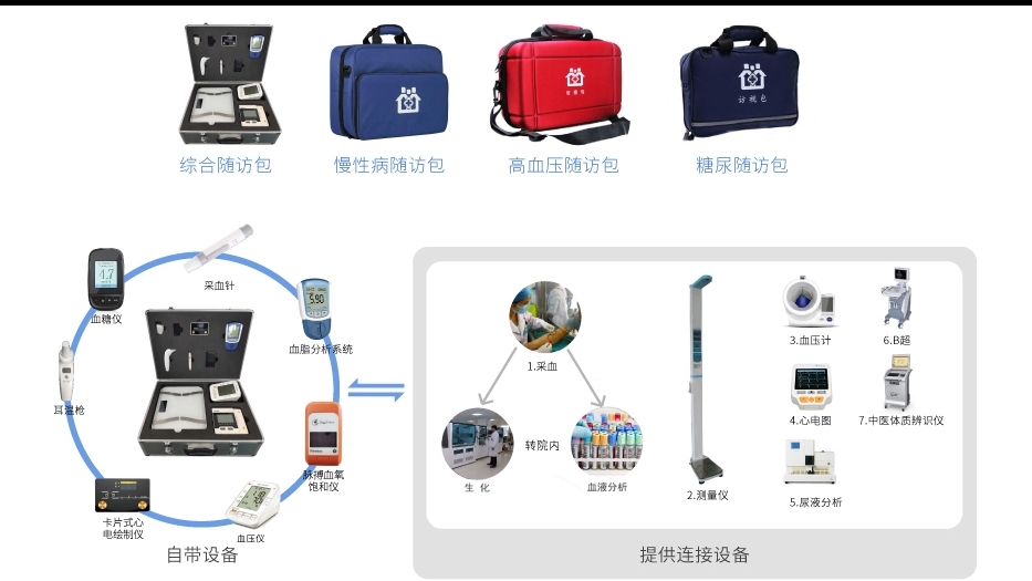 根據(jù)專(zhuān)科特色以及行業(yè)規(guī)范定制。所有的體檢和化驗(yàn)設(shè)備輕量化,醫(yī)生無(wú)需攜帶過(guò)多設(shè)備,并且檢查項(xiàng)目,效率極大提高。